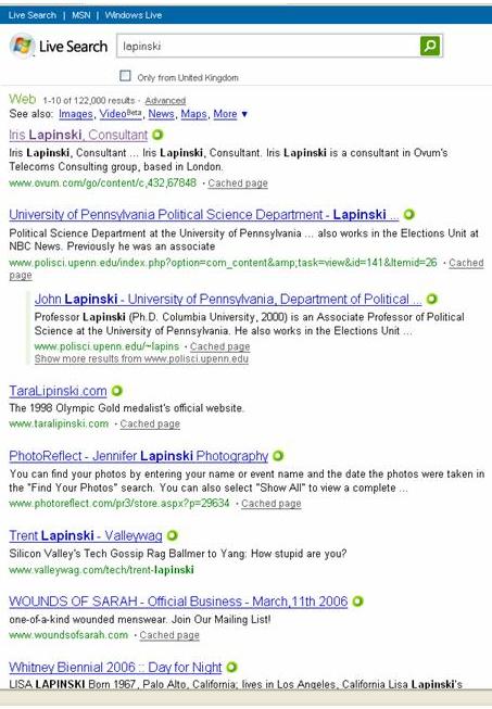 I was amazed. Not by the layout, but by the search result. The search for my family name – Lapinski – returned ca. 122,000 results. And my wife is in first place! 🙂 Well done Microsoft!!